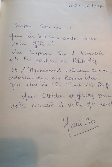 Jardin paysagé fleuri et terrasse exposée sud-ouest; Décoration Vintage rénovée avec des matériaux naturels ( tomettes, argile chaud, bois de récupération ).